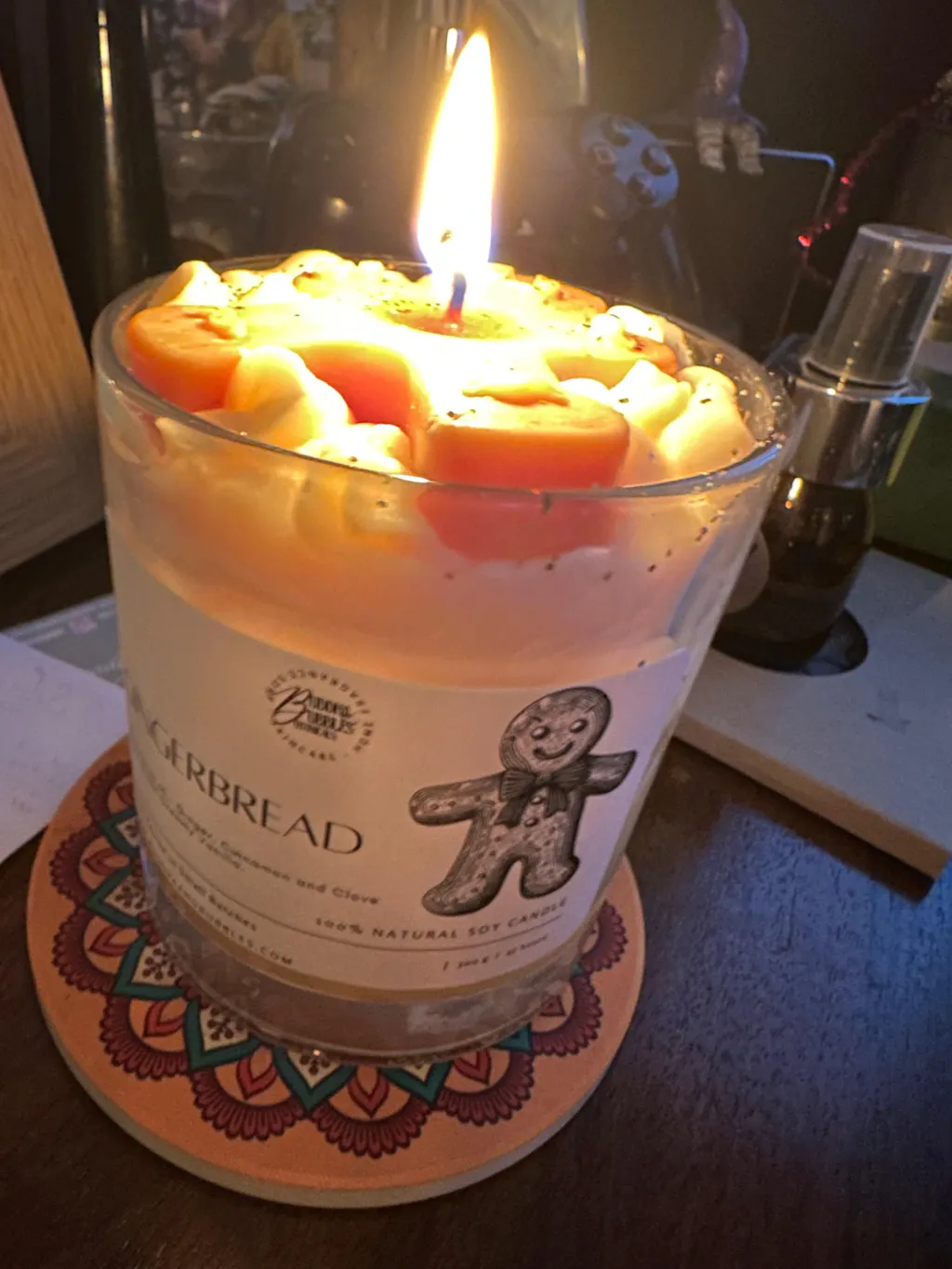I have honestly never smelt or seen such a stunning candle in my life. It lasts for so long and smells absolutely amazing. The room smells of gingerbread even when the candle is not lit! Beautifully hand made. I will be buying more.
